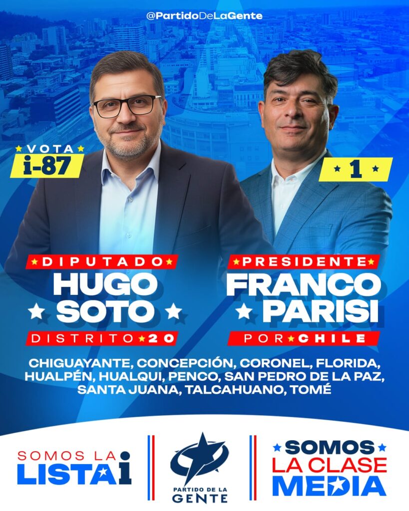«El gran respaldo a Franco Parisi no es un accidente, es el resultado de que la gente se cansó de la política tradicional. Nosotros, a diferencia de los partidos de siempre, no venimos a ofrecer ideologías complejas, sino soluciones de sentido común. Mi rol como diputado será ser la voz de la gente. Utilizaremos la tecnología para realizar consultas ciudadanas en línea, para que cada proyecto de ley que impulsemos nazca de la opinión y la necesidad de los vecinos de Talcahuano, Hualpén, San Pedro y todo el distrito. Se acabó la política de pasillo; ahora, las decisiones se toman con la gente.»
